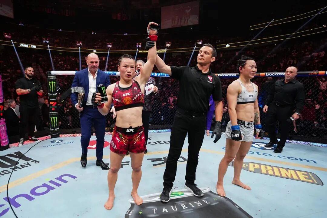 2024年4月14日,备受瞩目的UFC300在美国拉斯维加斯举行,两位中国选手张伟丽和闫晓楠进行了一场UFC女子草量级的王者之战。最终张伟丽经一致判定战胜闫晓楠,卫冕女子草量级金腰带。